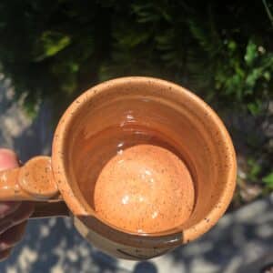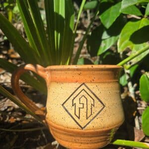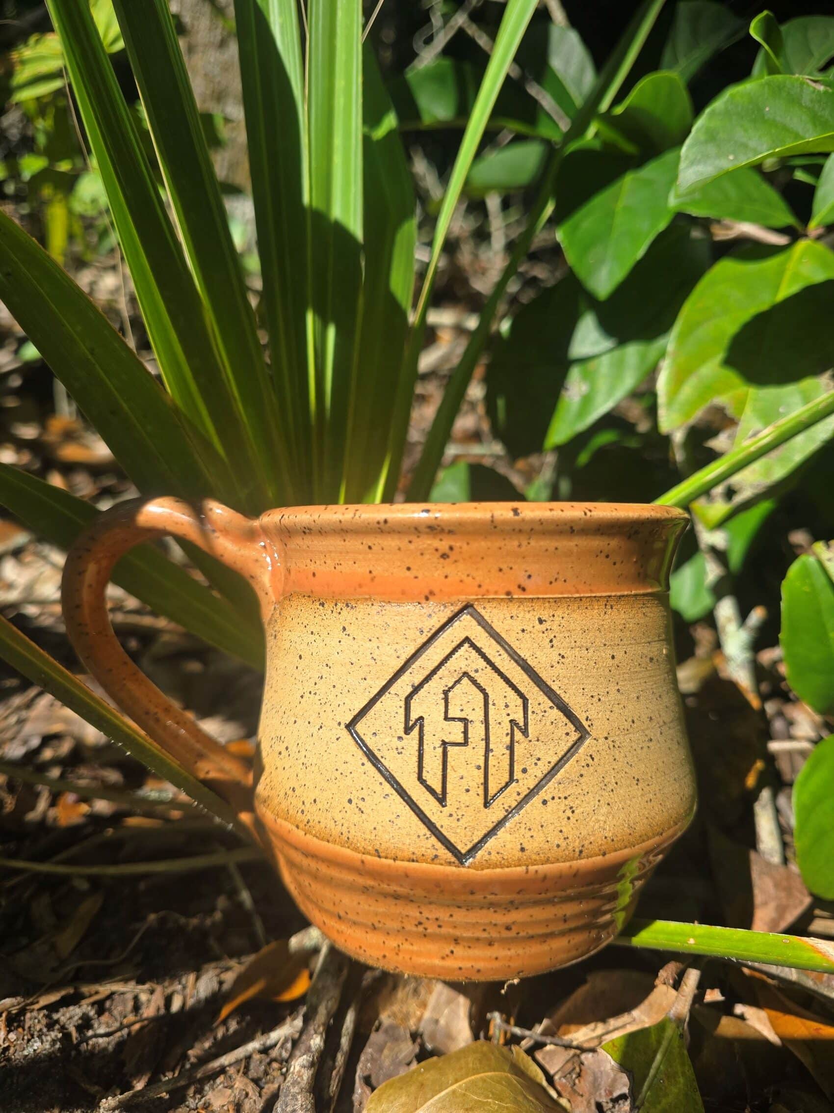 Enjoy your favorite beverage in a mug as unique as your journey. This 14 oz. handmade pottery mug is crafted for those who value quality, artistry, and the natural beauty of handmade ceramics. Featuring earthy tones with a warm orange glaze on the rim and base, it perfectly complements the speckled clay body. The Florida Trail Association mark is carefully etched on the front, making each mug a distinctive keepsake. Crafted by Hello Fern Creations. 3.5″ tall