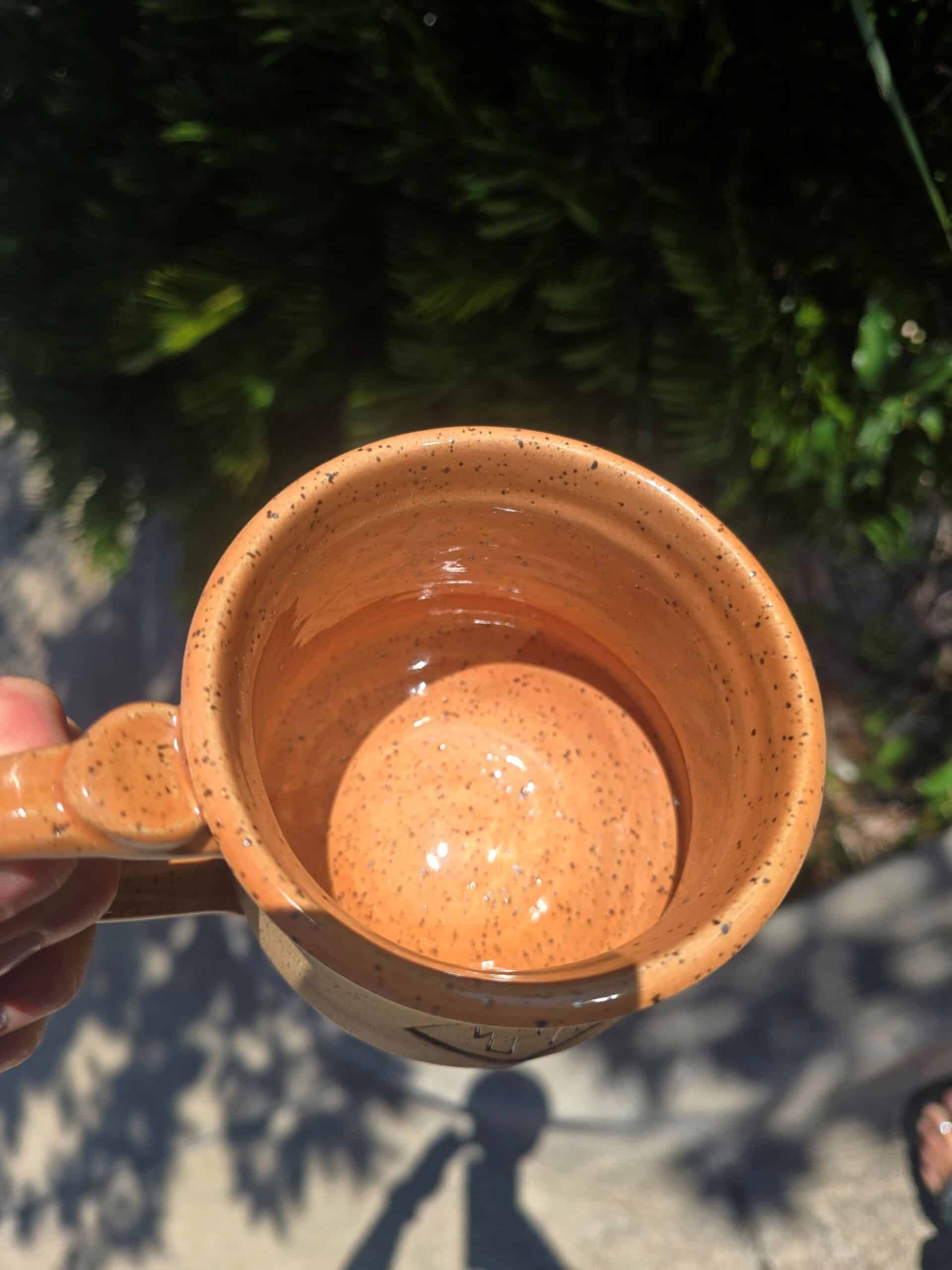 Design: Warm orange glaze with natural clay accents for a rustic, trail-inspired look