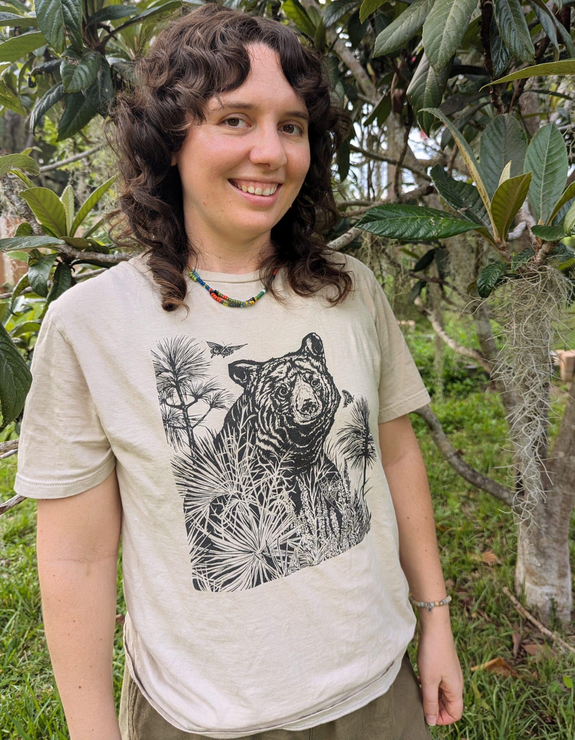 Bring a touch of the wild to your everyday style with the Bear Tee in soft sand color.
