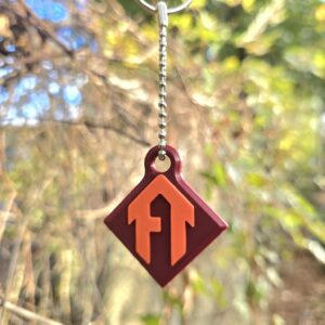 Shaped in the iconic Florida Trail mark, this 1.25″ x 1.25″ keychain features a bright, durable orange and burgundy design attached to a lightweight chain and keyring. It’s built to stand up to road trips, trail days, and everything in between.